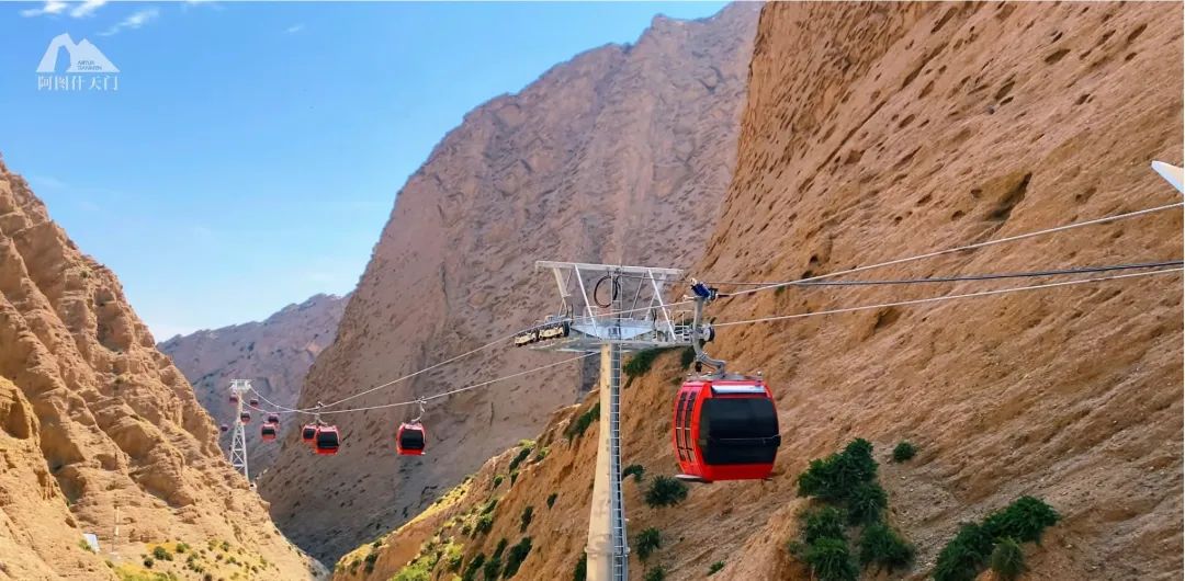 2024年,北起院同阿圖什市政府“央地合作”深入融合,在核心景區內擬建脫掛索道一條,往復式索道一條,分別通至天門兩側。本次竣工的脫掛索道上站與天門北側觀景平臺銜接棧道,游客可近距離感受天門震撼,體會大自然的鬼斧神工。
